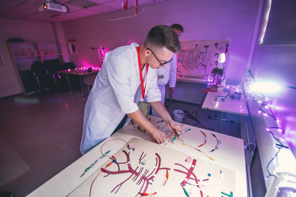 The IAO was first held in Tartu in May 2019. It was organized by second year medical students – Markus Tamm and his peers (see photo). A total of 40 first- and second-year medical students from Estonia, Latvia, and Lithuania competed in the event. Knowledge of anatomy was put to the test in the form of various theoretical and practical tasks. For example, the competitors had to figure out neural pathways and were required to build a moving joint out of some wooden blocks. After a long day of intense work, the participants gathered at the Old Anatomical Theatre for a film gala and other social games. The event was recieved very positively. A member from the winning team, Samuel Rüsse, summed up the competition by highlighting how participation in the International Anatomy Olympiad strengthened friendships among teammates and fostered overall collegiality.